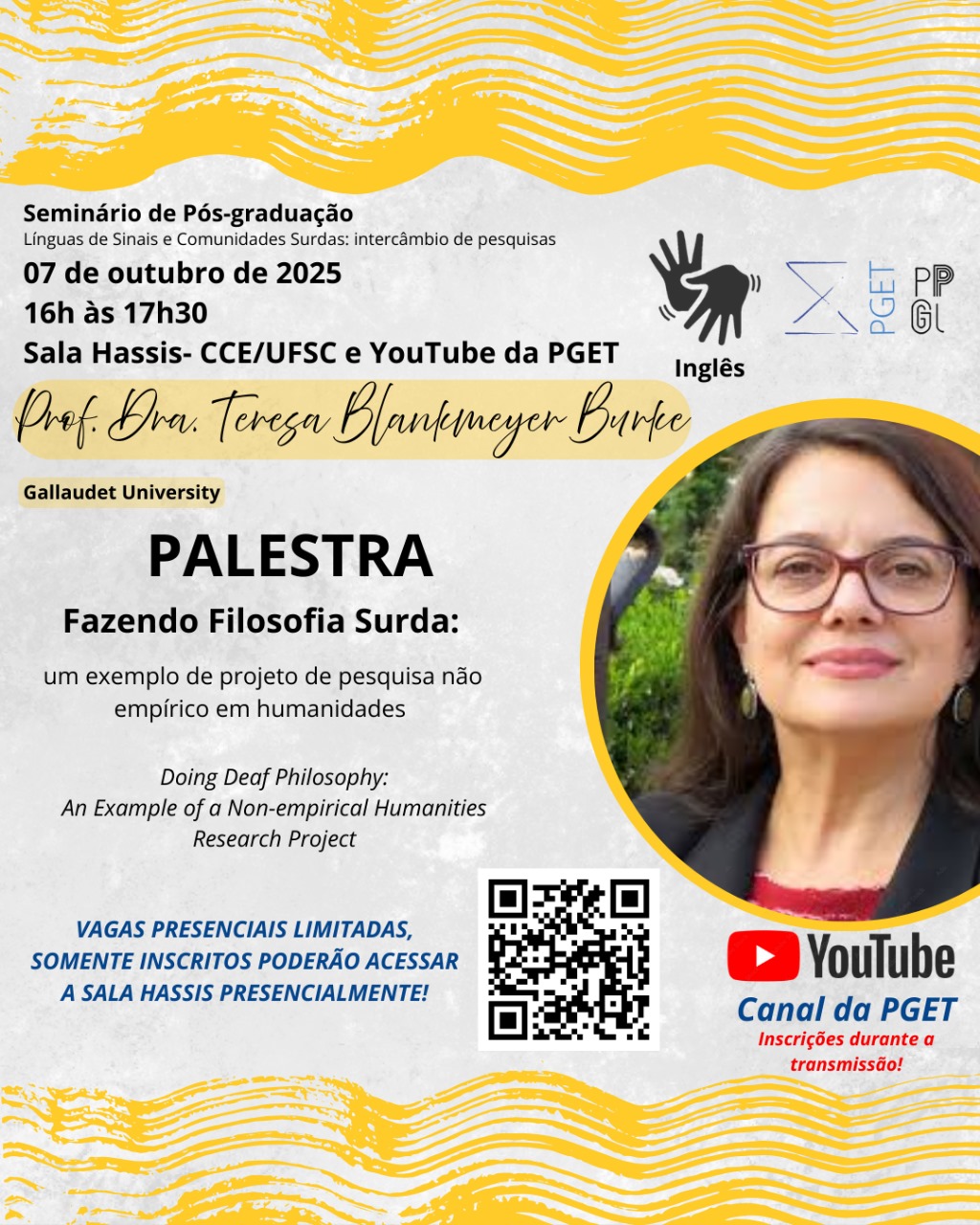 Palestrante: Profa. Dra. Teresa Blankmeyer Burke (Gallaudet University – Fulbright Distinguished Research Scholar, 2025)