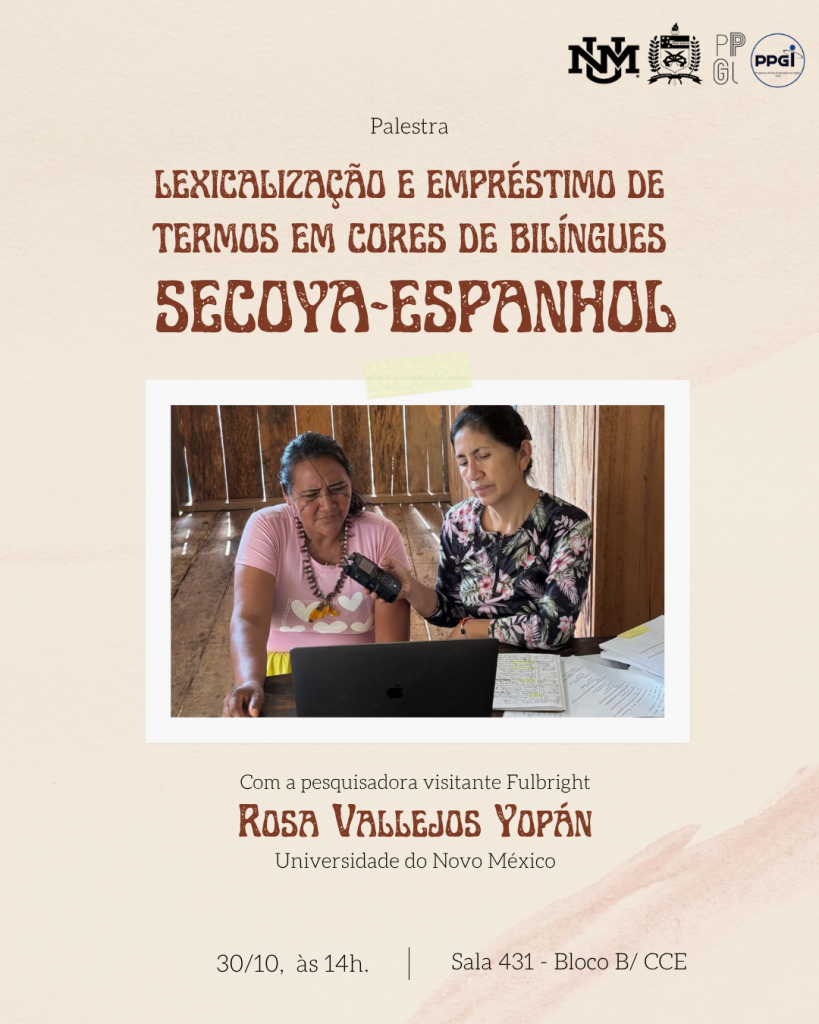 Palestra Lexicalização e empréstimo em cores de bilíngues Secoya-Espanhol