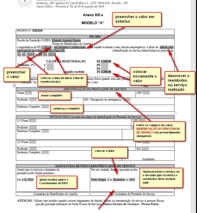 Após transcorrida a viagem, em até cinco dias úteis, enviar o i) relatório de prestação de contas, ii) o recibo A, iii) o certificado de participação e apresentação em evento e iv) os bilhetes de embarque para o e-mail valter.pereira.romano@ufsc.br. IMPORTANTE: Anexar cada arquivo em PDF separado.